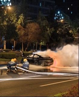 成都一新能源汽车碰撞后起火 车门无法打开致救援受阻